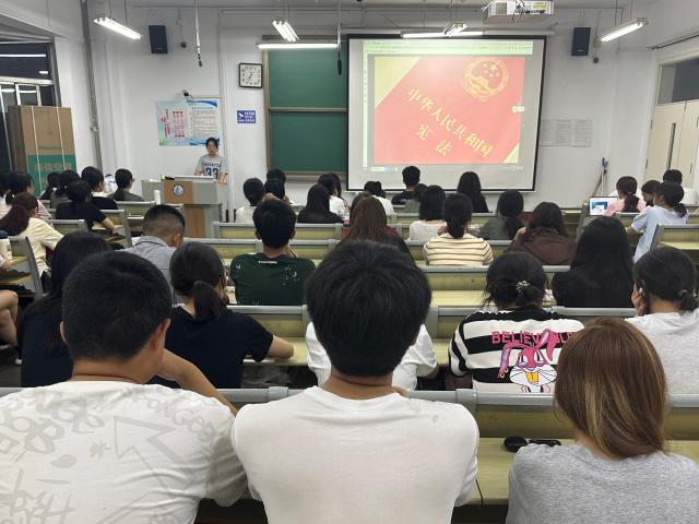 本次活动以新生入学教育为支点,围绕宪法宣讲、知识竞答、交流互动等环节展开,弘扬宪法精神,坚定宪法自信。活动过程中,志愿者从宪法的基本原则入手,普及宪法及宪法相关法的基本常识,具体阐述宪法在国家法治体系中的重要地位和作用,并结合大学生日常生活中可能遇到的各类法律问题进行详细讲解,引导新生增强法律意识,树立宪法法律观念。随后,各班新生集体观看宪法学习的互动视频,并依托学习平台进行宪法与法律知识竞答,感受宪法力量,坚定法律信仰,努力争当宪法小卫士。在交流互动环节,在场学生纷纷表示,本次活动加深自己对宪法内涵和权威的理解,将以此次活动为契机,认真学习法律知识,厚植爱国情怀,为构建法治校园、和谐社会献出自己的青春力量。