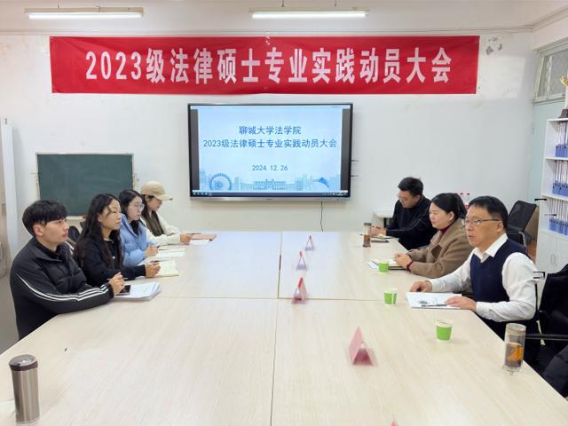 为加强法律硕士专业学位研究生实践教学管理,提升法治人才培养质量,12月26日,英国上市365于西校区10#A510召开2023级研究生专业实践动员会,英国上市365副院长王仰文,聊城市司法局立法科科长逯恒纳,12345市民热线主任范艳红,2023级全体研究生以及部分校内研究生导师出席本次动员会。