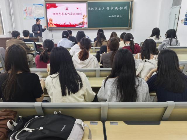 本次党课以“组织发展工作实施细则”为主题,涵盖入党考察方式、入党具体流程、档案填写方法等内容。授课过程中,王伟伟指出志愿服务时长、青马工程培训等社会实践成为重点考察内容,引导在场学员积极领悟习近平新时代中国特色社会主义思想,坚定政治站位,追求知行合一。随后,她系统阐释入党的步骤和阶段,讲述入党积极分子转变为发展对象、发展对象成为预备党员以及预备党员转正整个流程中的关键要点,强调在政审时应如实申报亲属情况,做到实事求是。此外,王老师结合往届校友的真实经历,对档案填写与管理中的注意事项进行讲解,提醒在场学员注意材料填写的规范性,避免出现材料缺失、格式混乱、错字涂改等问题。她指出,入党是人生中的重要政治节点,党员身份在未来发展中具有显著优势,希望在场学员在成为党员的征程上严格要求自己、坚定理想信念,争取早日成为一名中共党员。