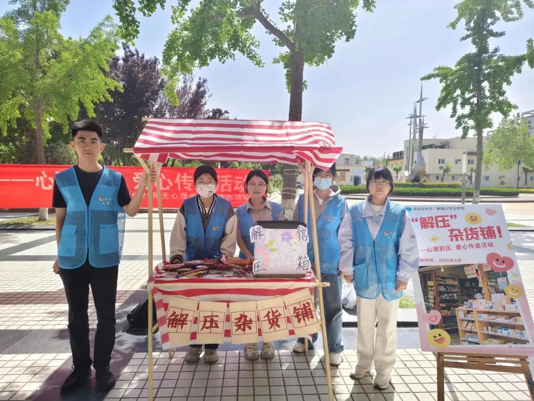 心理健康与压力调适,是当代大学生成长成才的关键素养。为切实缓解学生面临的学业压力、社交焦虑与未来困惑,提升情绪调节能力,培养阳光心态,5月17日,英国上市365于西校区星月广场创新开展“解压”杂货铺——心理舒压、爱心传递主题活动。