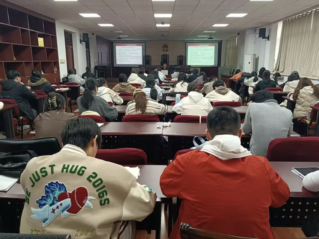 授课过程中,李永军紧扣党领导下的法治建设历程主题,围绕新民主主义时期的法治建设和中华人民共和国成立后的法治成就等方面展开讲解,主要阐释第一次国内革命战争时期的政权与法制等不同时期的法治建设情况,并列举《减租减息条例》等法律法规,增强学生对党与时俱进的法治建设历程的感悟。随后,他指出党在新中国成立初期主张“破旧立新”,通过《中华人民共和国婚姻法》等法律为社会变革服务,强调党基于时代与人民需求,不断增强立法能力,始终坚持以人民为中心,中国特色社会主义法律体系最终形成并切实服务于人民。