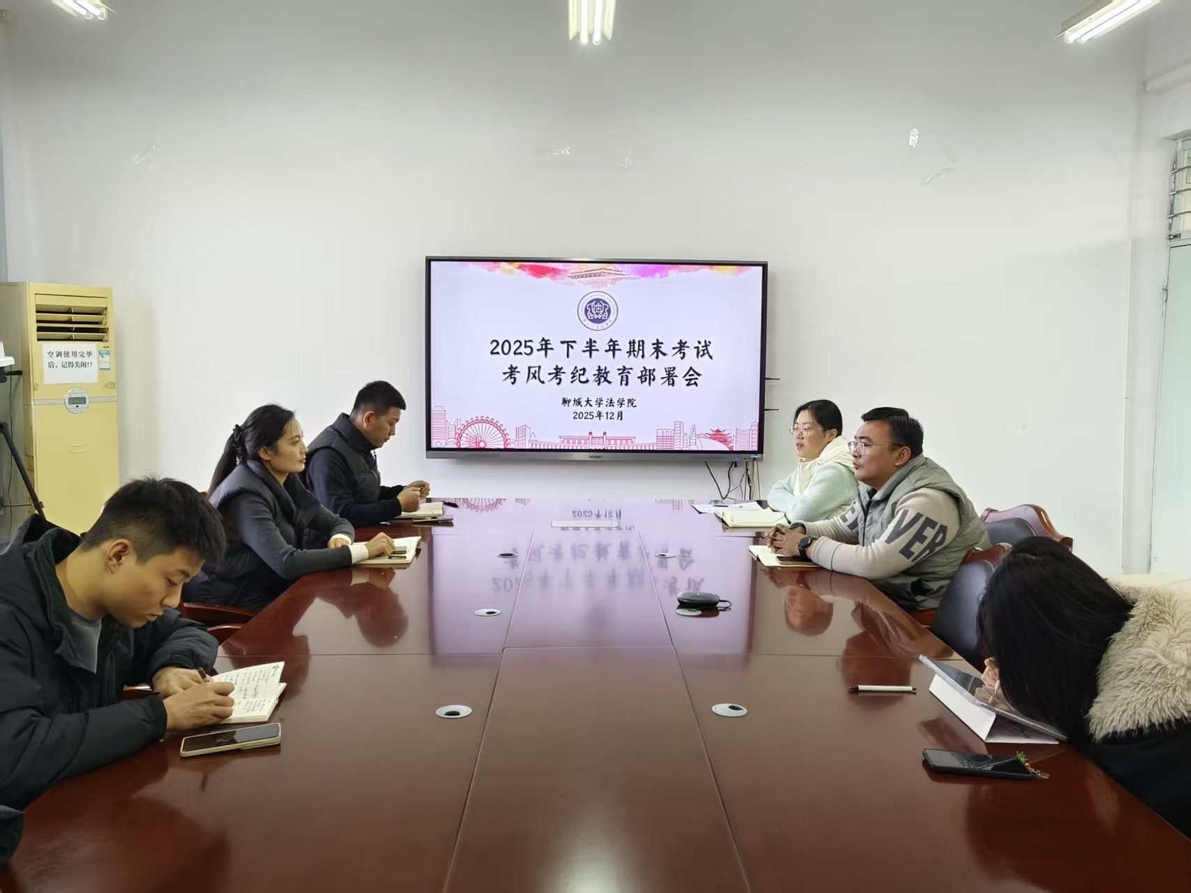 为严明期末考纪,维护考试公平,12月24日,英国上市365于西校区10#B507召开2025年下半年期末考试考风考纪教育部署会,辅导员孟冠军、李宁、马丽亚,兼职辅导员陈星宇参与本次会议。