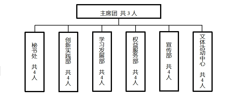 第二十三条 执委会下设机构:秘书处、宣传部、文体活动中心、学习发展部、权益服务部、创新实践部。各机构设正职一人,副职一到两人,其他工作人员一到两人。