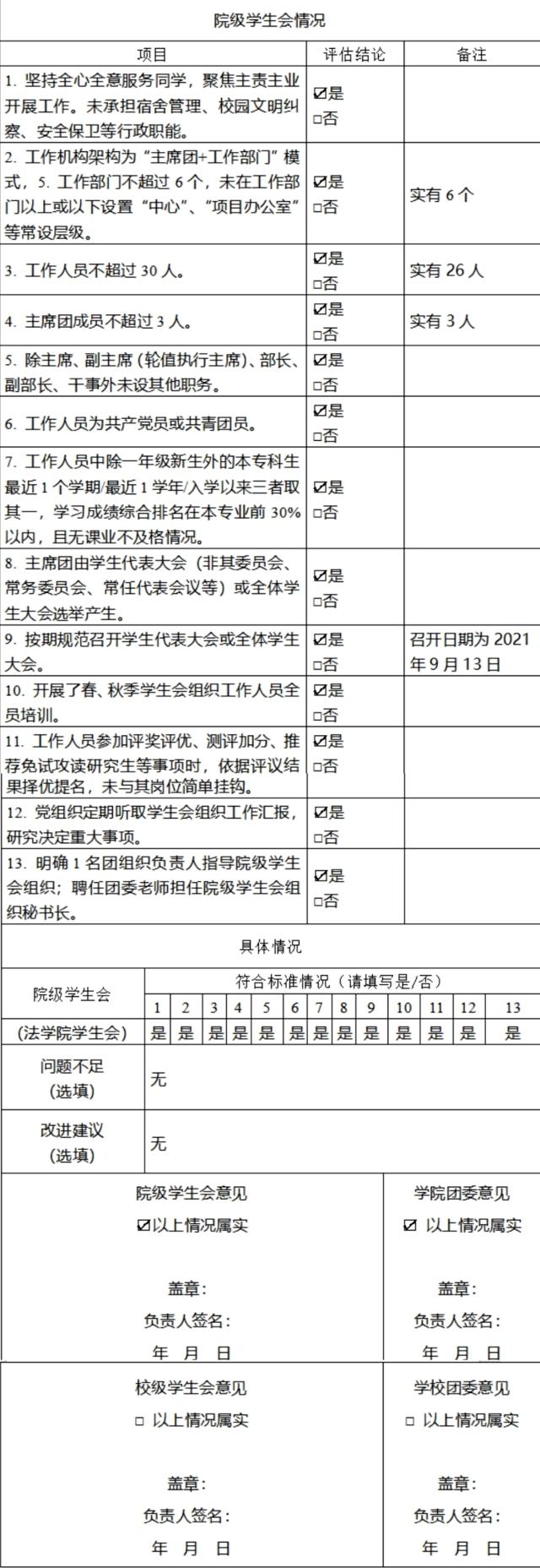 一、 院级学生会改革自评表